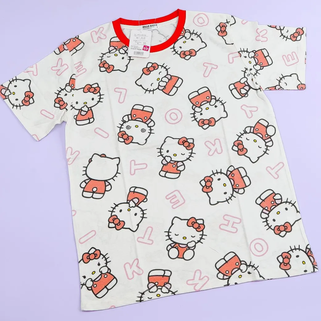 Wear this kawaii shirt for a dose of cuteness! It’s decorated with cute prints of Hello Kitty and the letters spelling her name. This shirt is made from blended cotton fabric so you can comfortably wear it at home.
