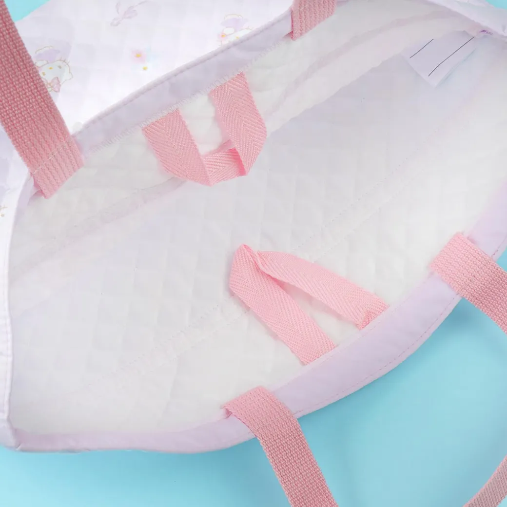 Bring your school papers and laptop in kawaii style by using this super cute quilted bag! It has prints of Hello Kitty and spring flowers all over.