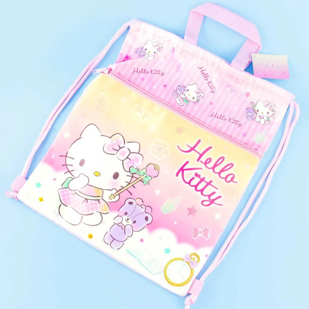 - A super kawaii multi-strap bag covered in prints of Hello Kitty in a magical dreamland
