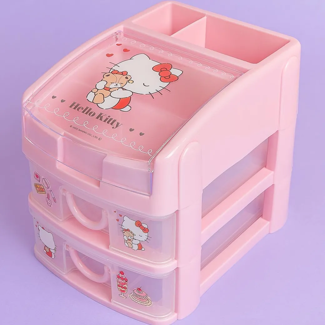 Organize your study table with this kawaii drawer chest! It features cute prints of Hello Kitty and Tiny Chum with desserts and makeup. The chest comes with multiple compartments so you can use it to store different kinds of school supplies!