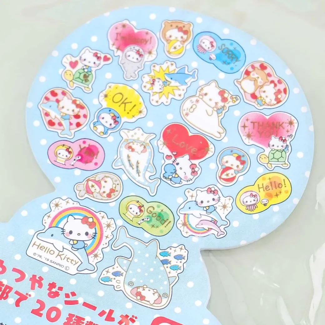 - A pack of die-cut puffy deco seals featuring Hello Kitty and her sea animal friends