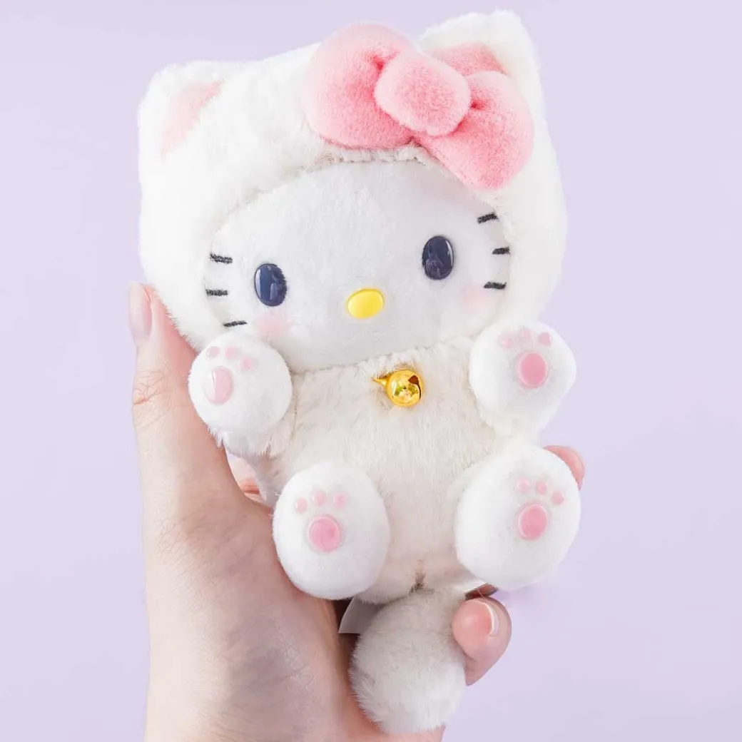 - A super cute medium-sized Hello Kitty plushie wearing a cat costume