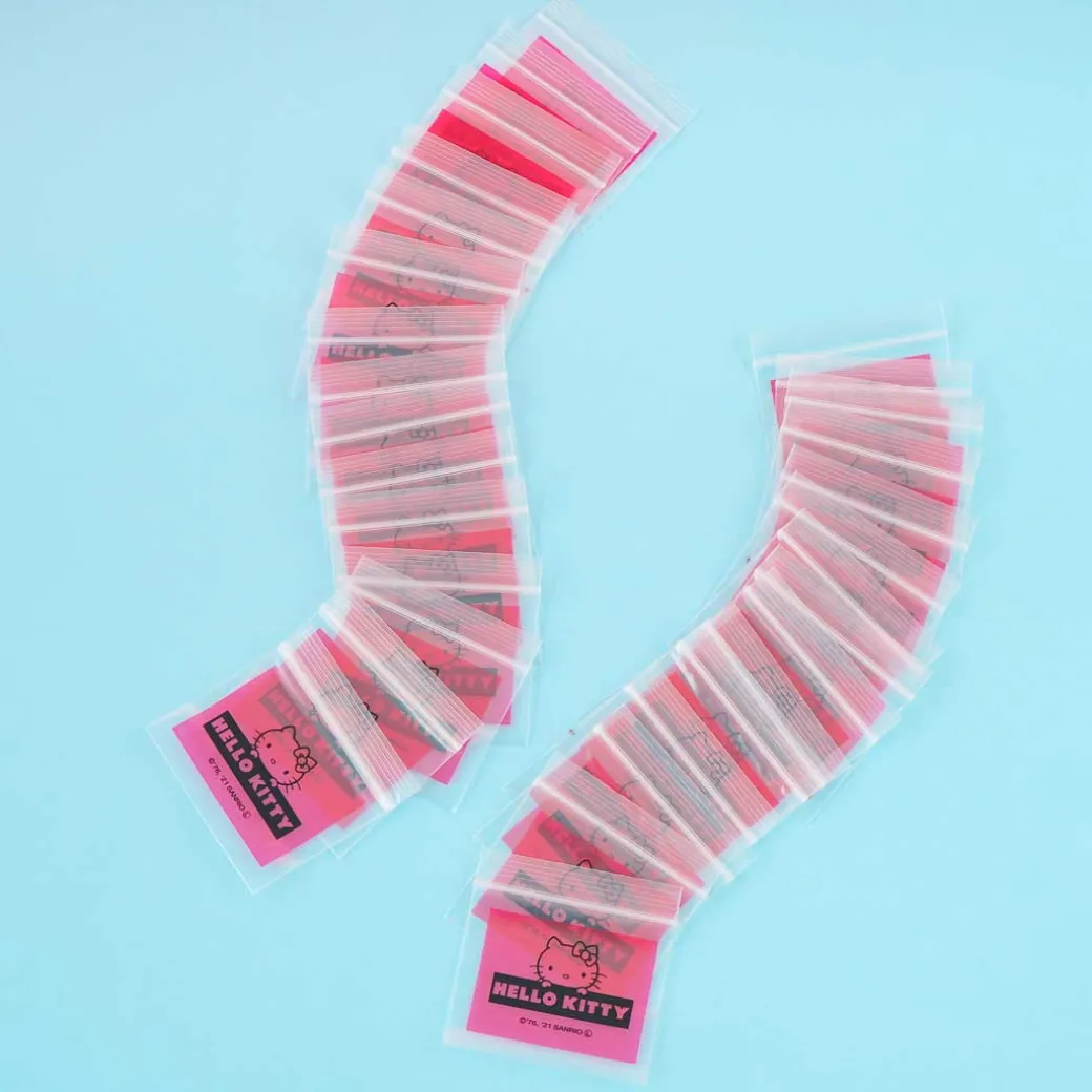 This super cute set of zip bags showcases a print of Hello Kitty peeking over her name. Use these A9-size zip bags to organize your things! You can also use it to bring along small toiletries during trips.