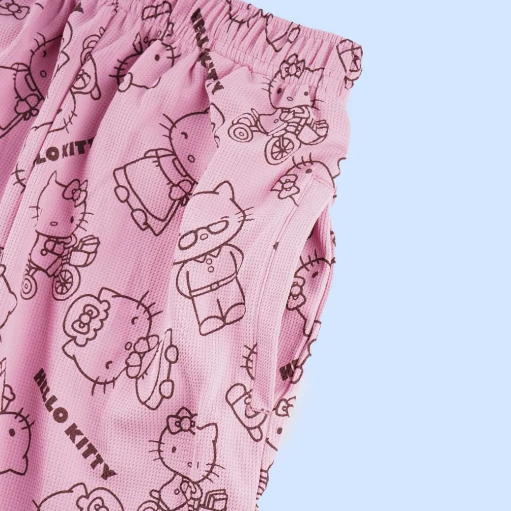- A kawaii loungewear set decorated with prints of Hello Kitty and toys