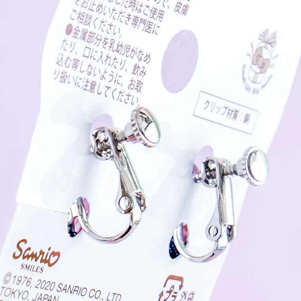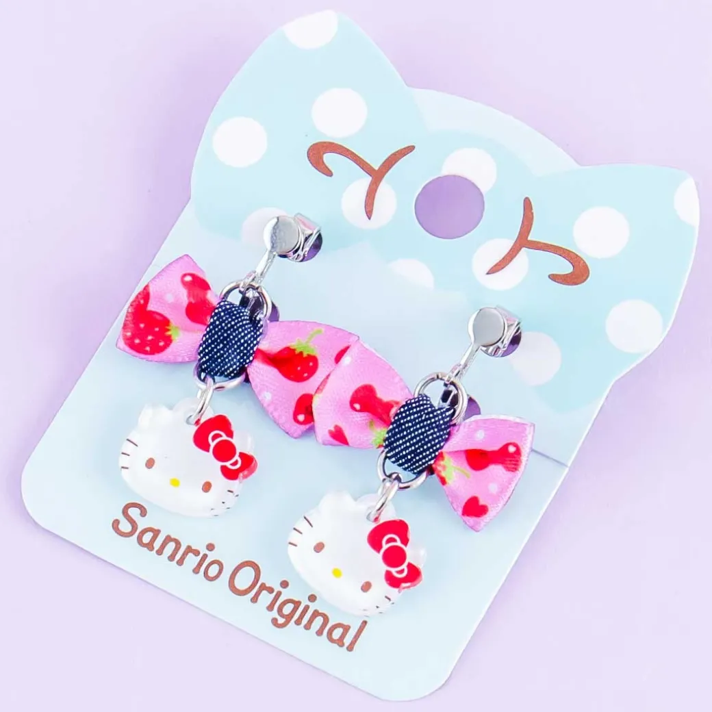 - A super cute pair of copper clip-on earrings decorated with ribbons and Hello Kitty charms