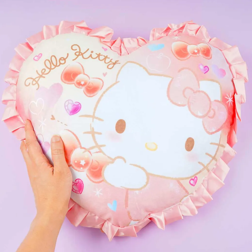 This kawaii heart-shaped cushion is perfect for Hello Kitty lovers! It features a cute illustration of Hello Kitty with prints of ribbons and hearts. You can use it as a pillow or as a display for your living room!