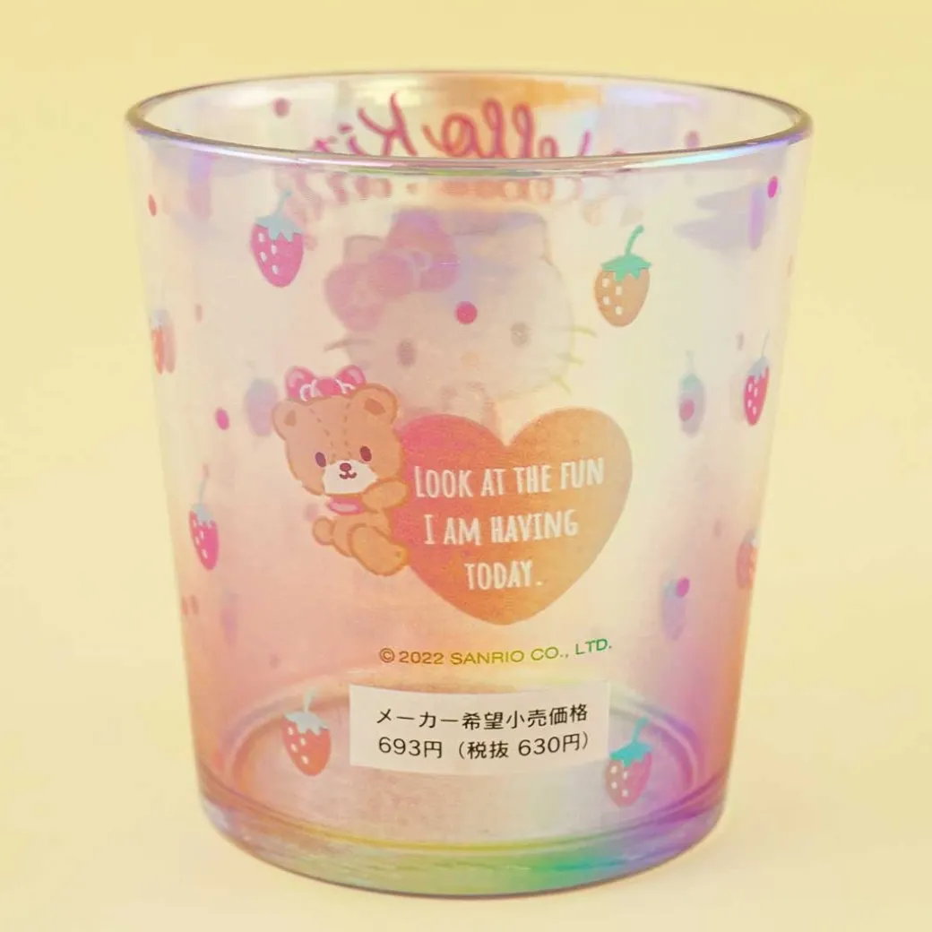 - A kawaii cup illustrated with Hello Kitty and strawberries