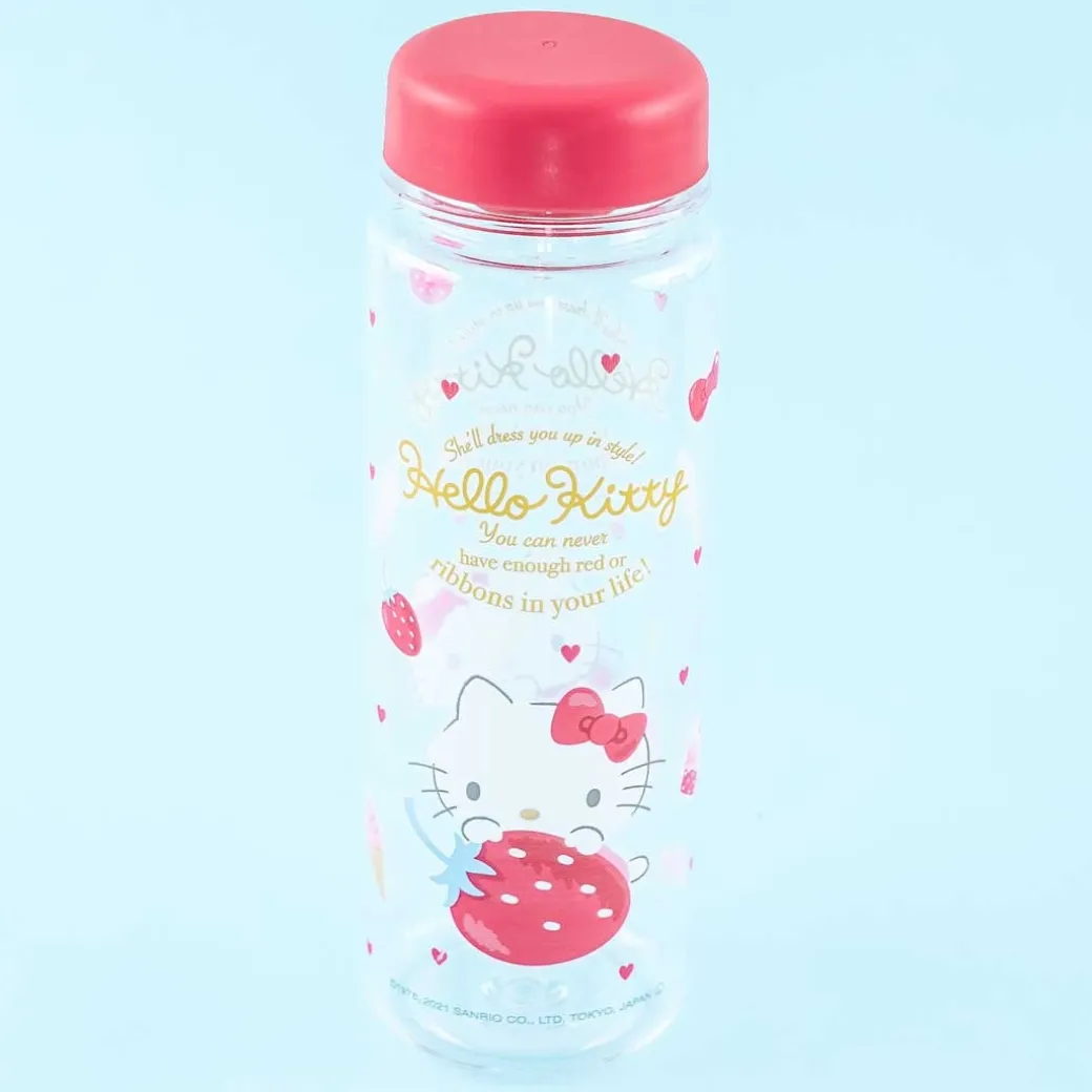 - A kawaii drinking bottle decorated with Hello Kitty and strawberries