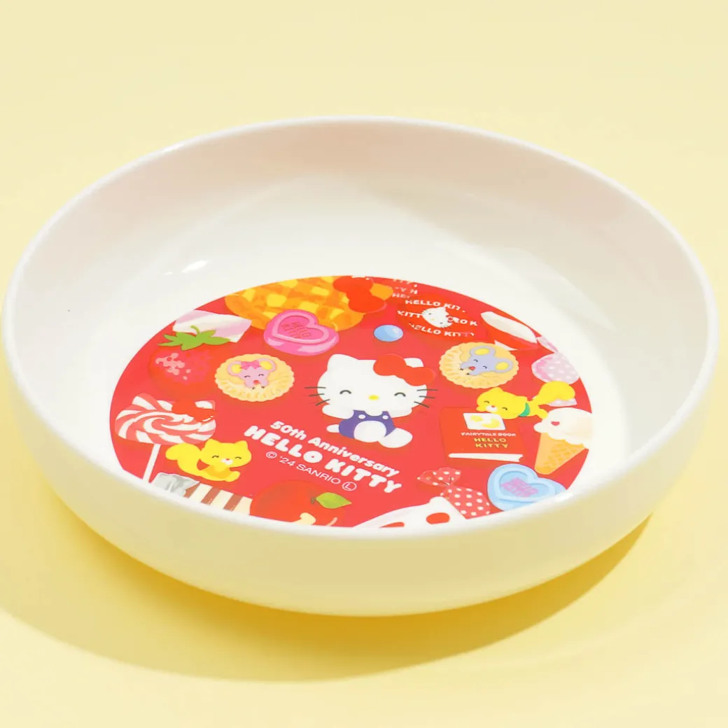 This kawaii plate is decorated with illustrations of Hello Kitty and yummy-looking desserts! It comes from Hello Kitty’s 50th Anniversary collection. Use it to eat a slice of your favorite cake!