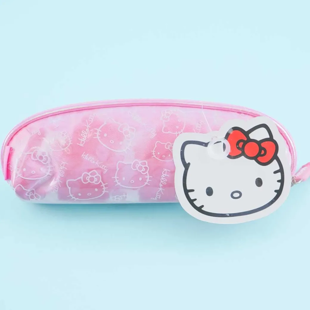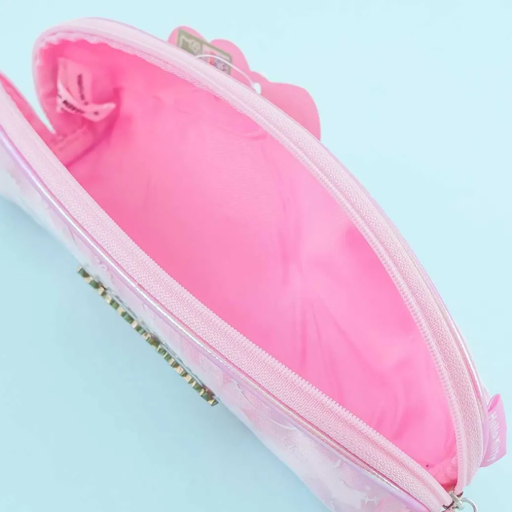 - A kawaii zippered pen case illustrated with Hello Kitty