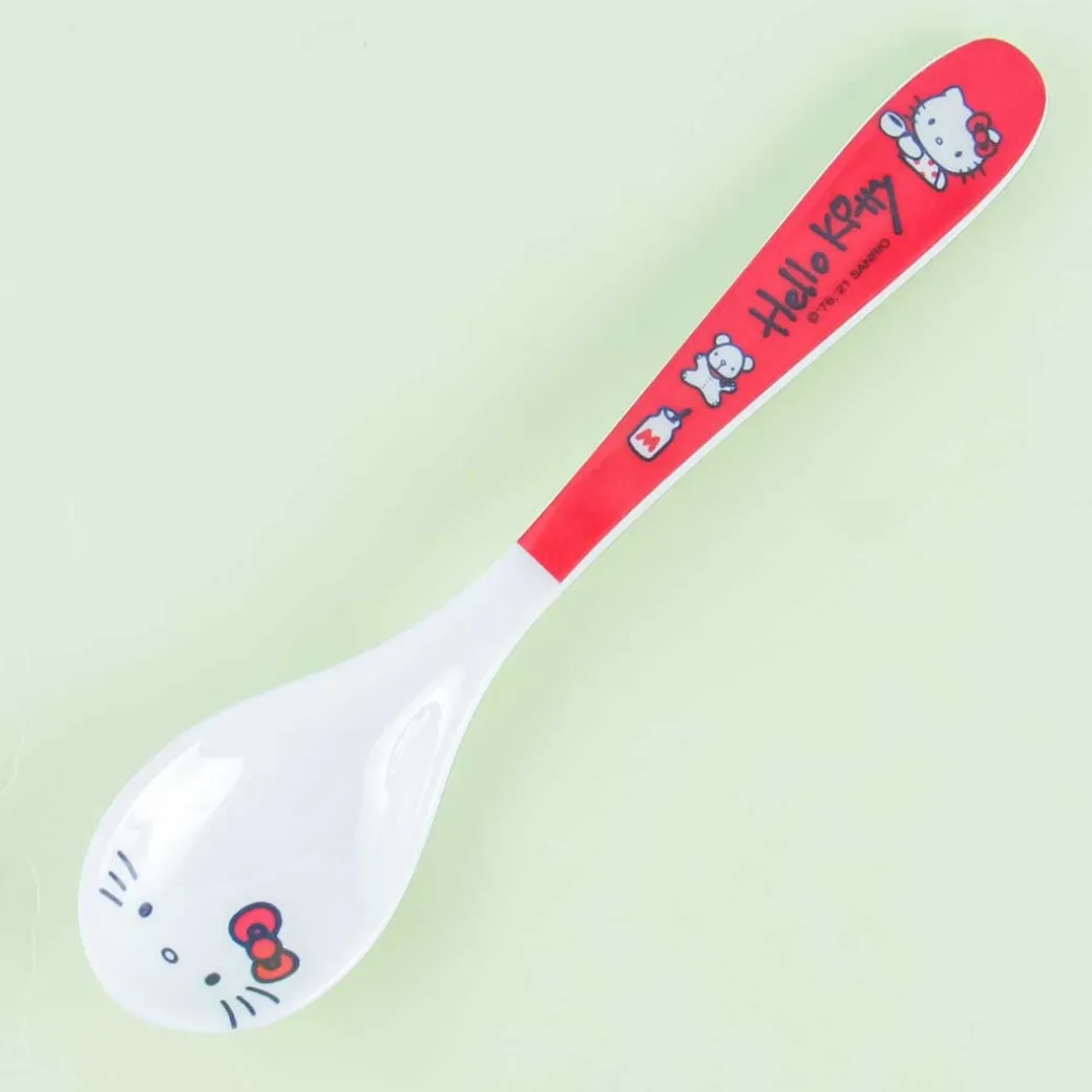 - A spoon decorated with an illustration of Hello Kitty having tea