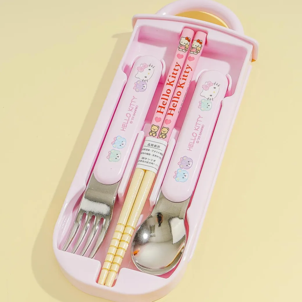 Take this super cute utensil set to your picnic! The antibacterial spoon and fork, reusable bamboo chopsticks, and transparent case all feature cute illustrations of Hello Kitty and her teddy bear friends. Just slide off the case to open and close this utensil set.