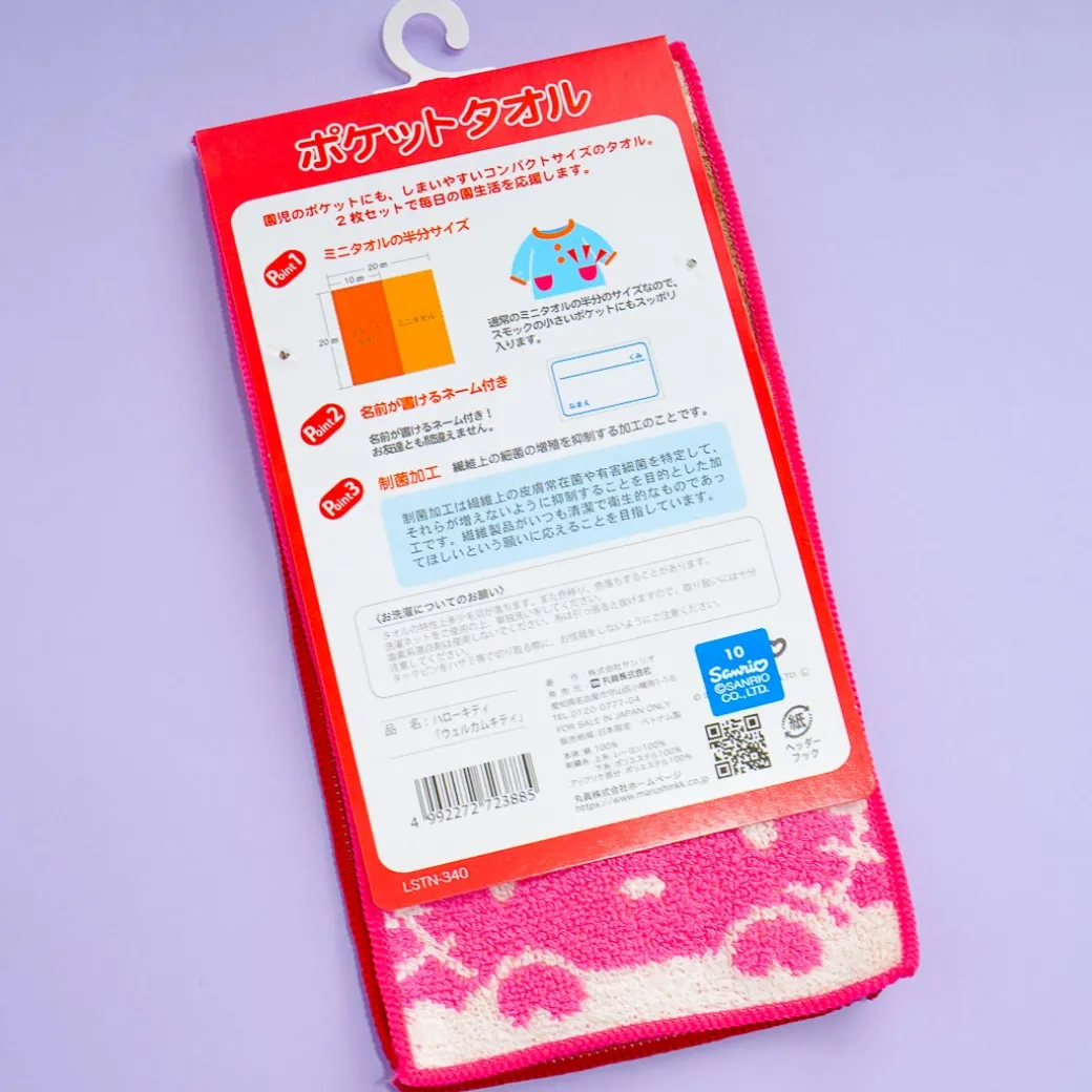 Take these fluffy mini towels with you when you go outdoors to keep sweat off your face! The set is decorated with kawaii illustrations of Hello Kitty and her bear friend, Tiny Chum! These rectangular towels also dry quickly!
