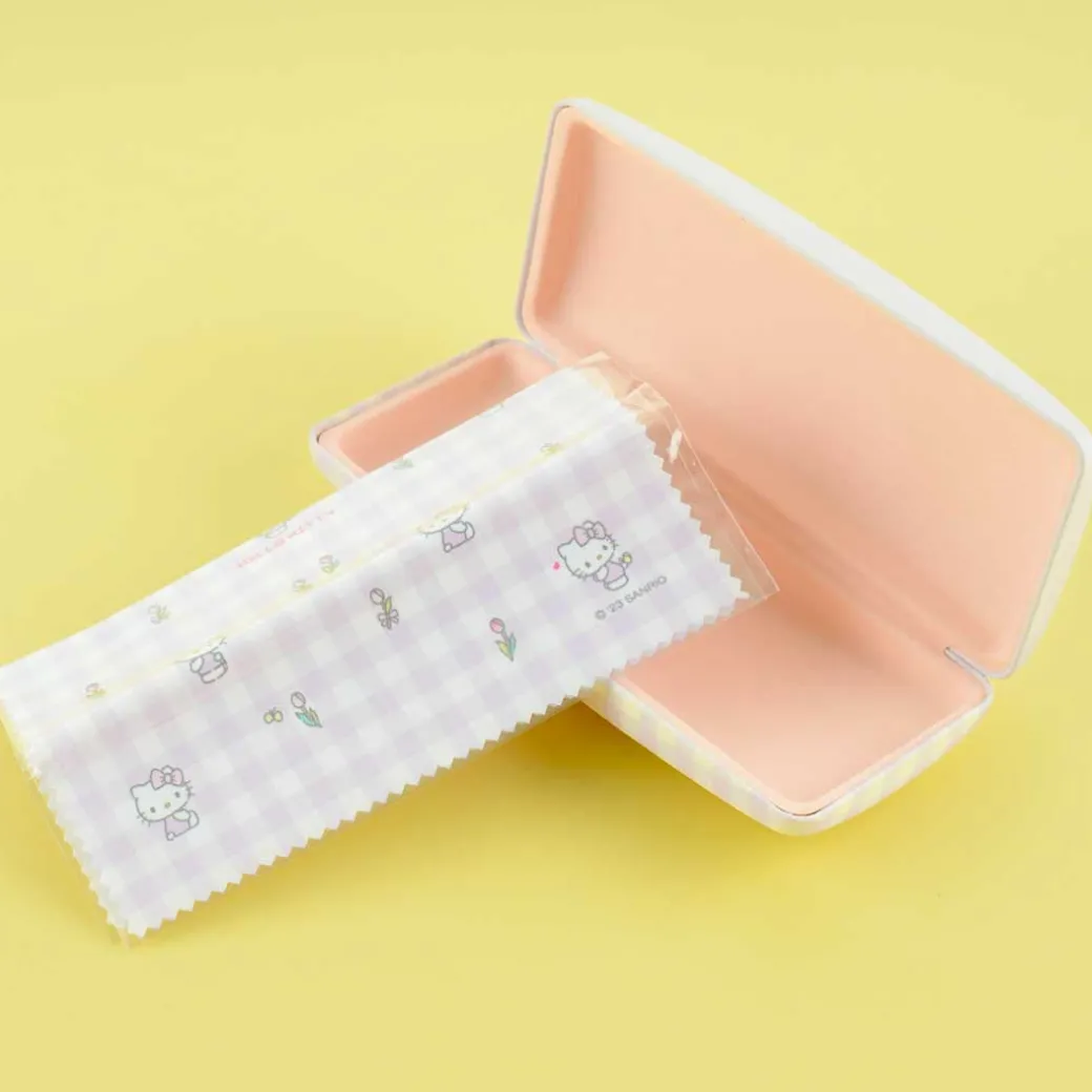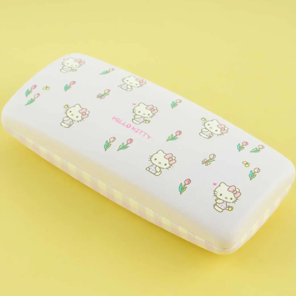 Keep your eyeglasses safe by placing them inside this super cute case! It’s decorated with gingham patterns and prints of Hello Kitty surrounded by lots of tulips.