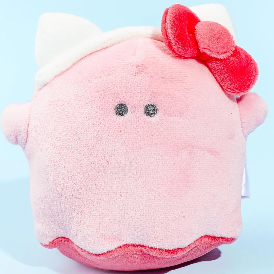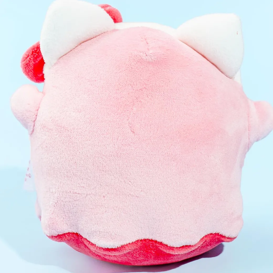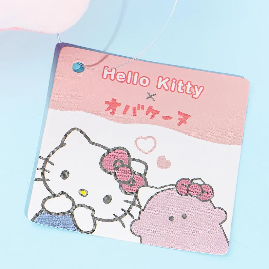 An Obakenu ghost is trying to dress up as Hello Kitty! Have fun playing together with this medium-sized plushie. It comes from a collaboration between Sanrio and Obakenu.