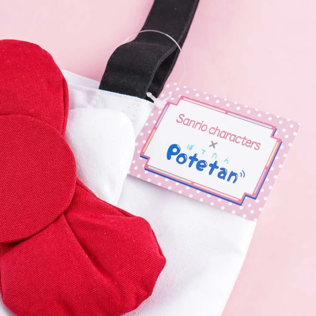 - A kawaii Hello Kitty tote bag with a die-cut design resembling a Potetan animal plushie