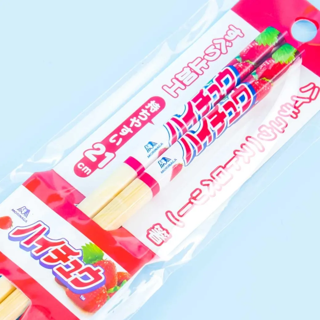 - A pair of eco-friendly bamboo chopsticks resembling the Hi-Chew Strawberry packaging