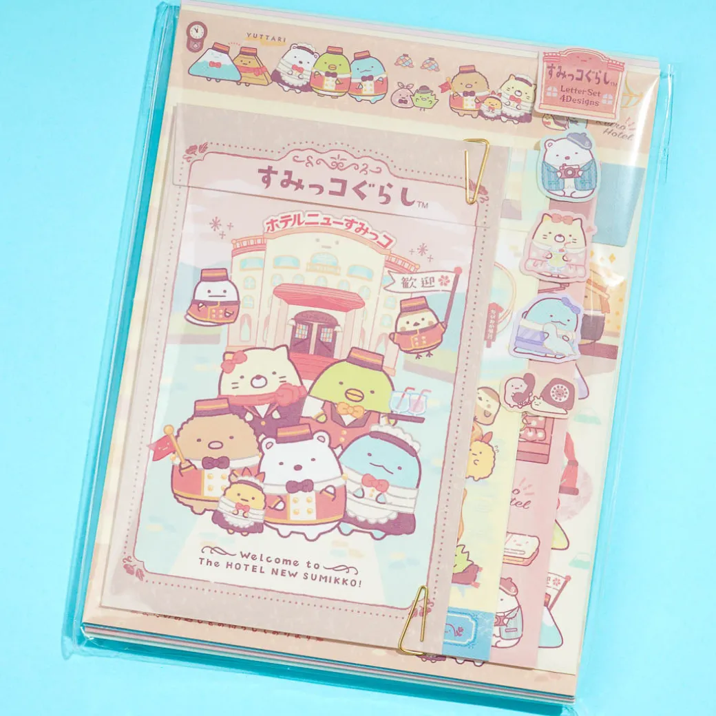 This kawaii letter set features colorful illustrations of the Sumikko Gurashi characters as staff running their own hotel! Use these super cute sheets and envelopes to create handwritten birthday invites!