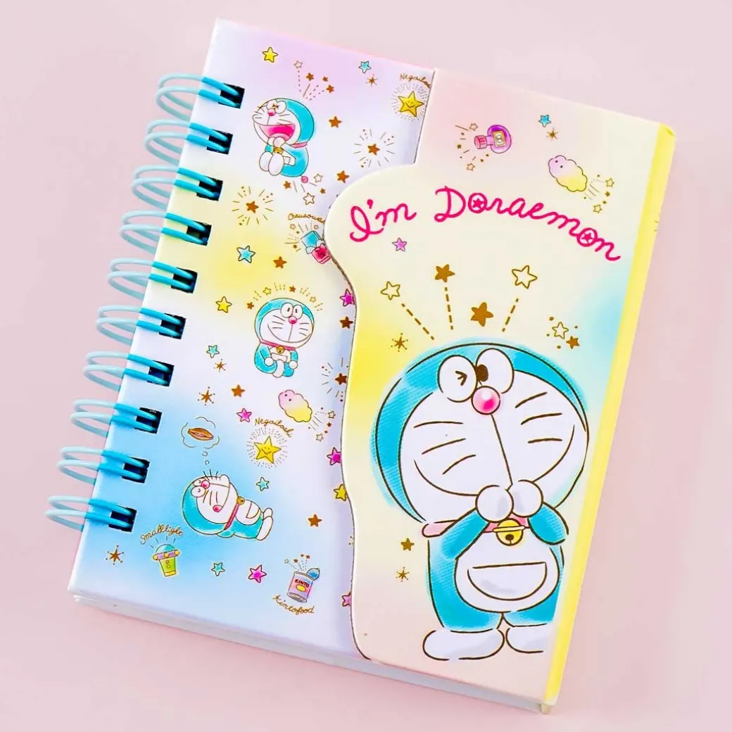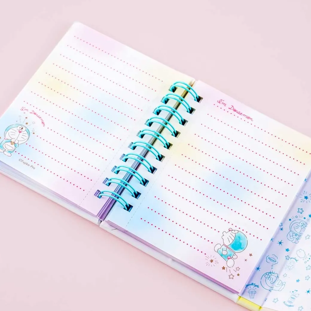 - A kawaii mini spiral notebook with illustrations of a dreaming Doraemon and lots of stars