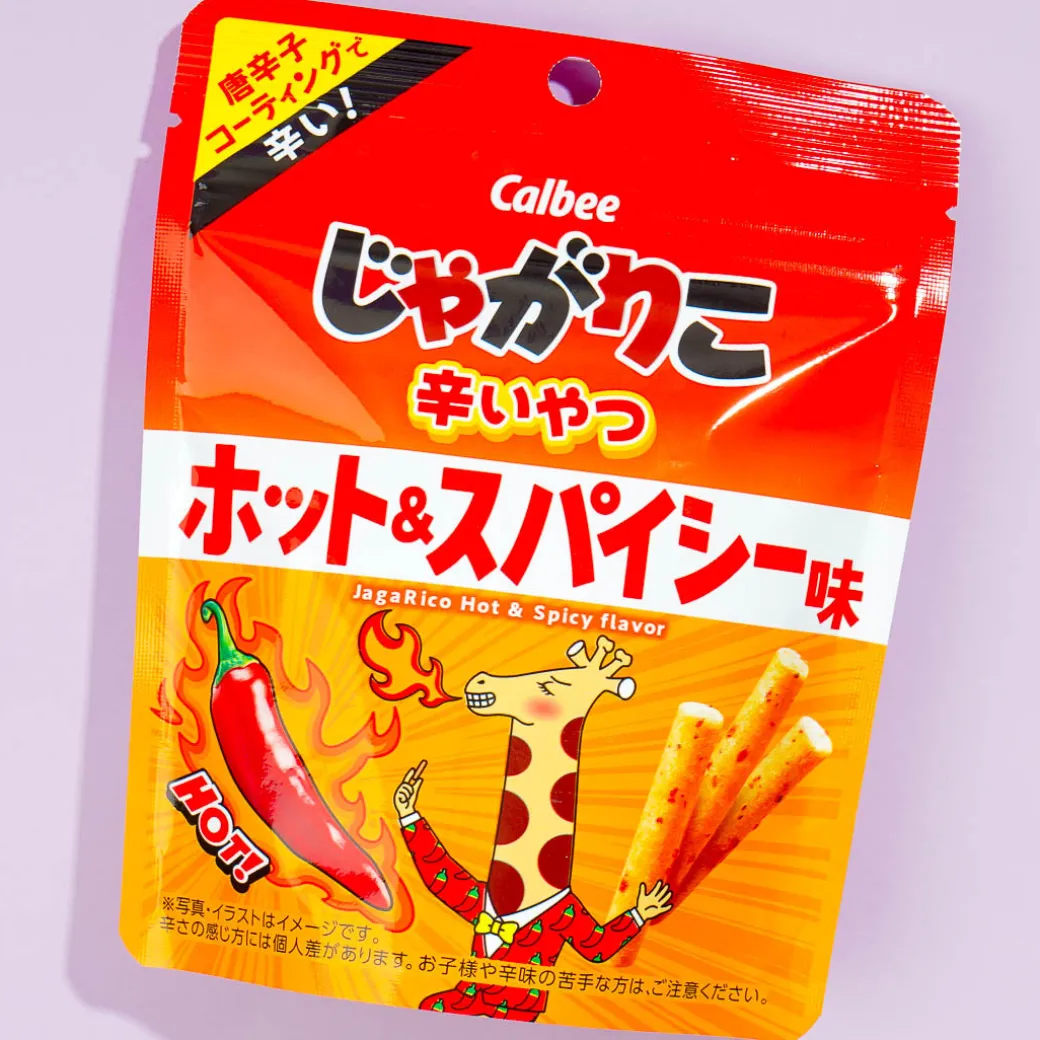 Snack on this resealable pack of spicy potato snacks while watching your favorite anime. It showcases a print of Urusei Yatsura characters! These potato snacks are seasoned with powder made from chili peppers, meat, veggies, and black pepper.