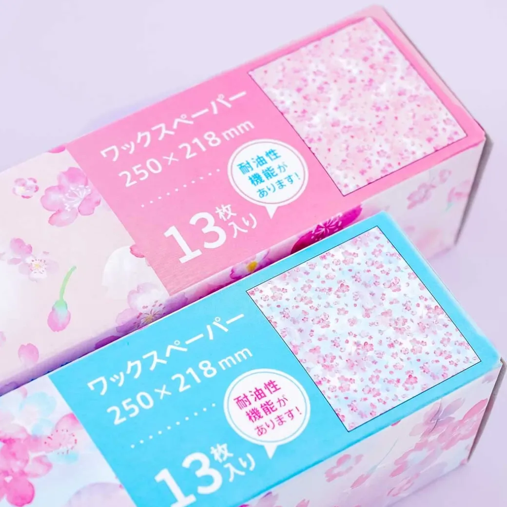 - A roll of food-grade wax paper sheets printed with cherry blossoms