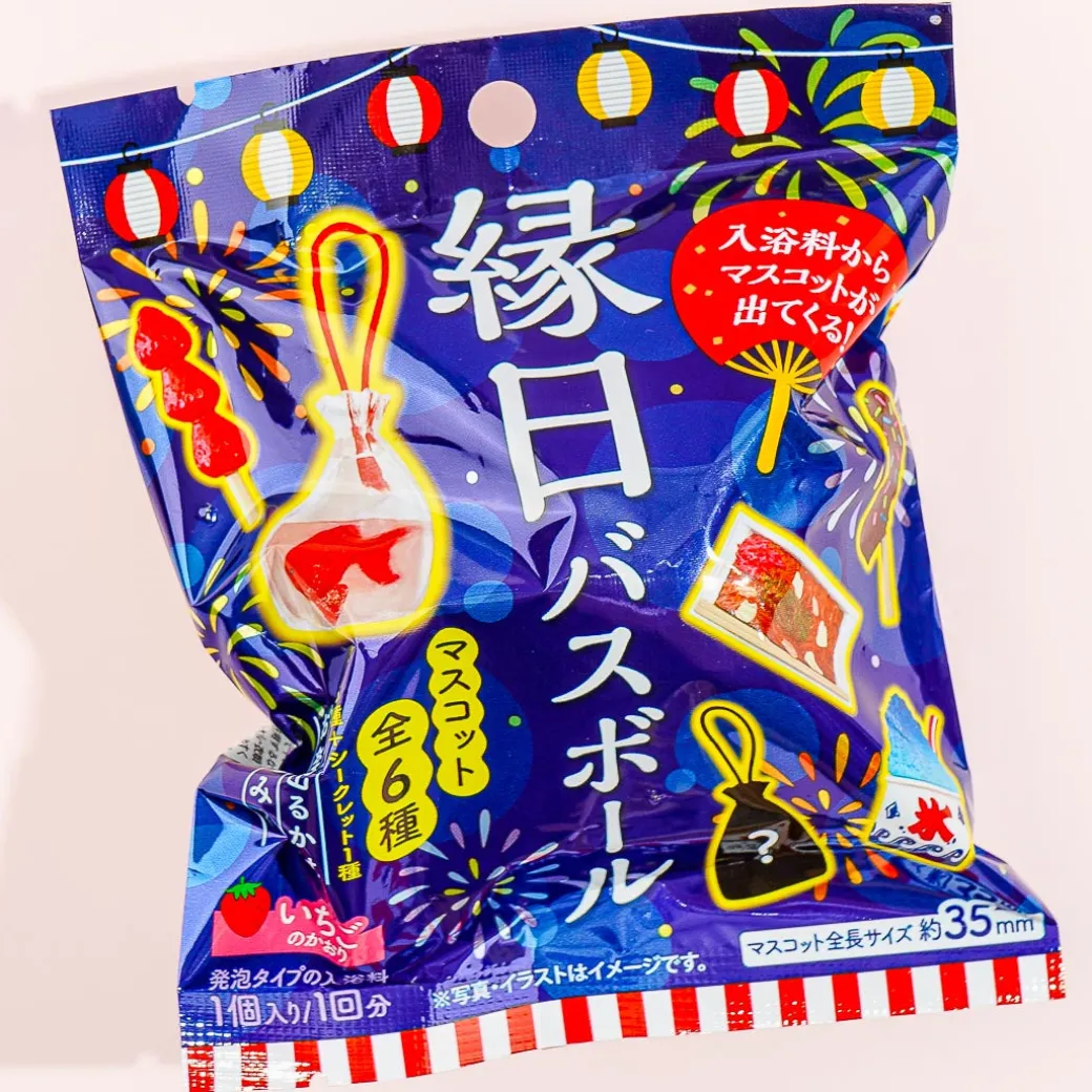 - Includes: 1 x strawberry-scented bath bomb and 1 x Japanese festival figure