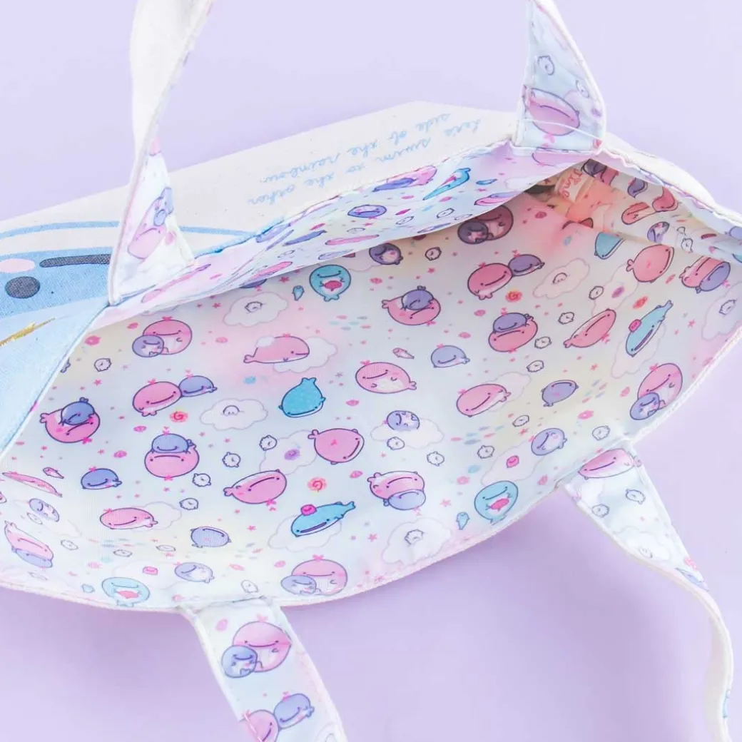 - A reversible bag with Jinbesan embroidery and character illustrations