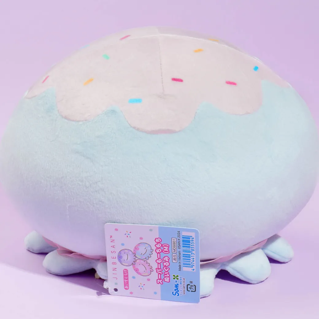 Kawaii-fy your bed in an instant by placing this cute smiling jellyfish plushie! It comes from the “Jinbesan & Icekurage” collection wherein Jinbesan meets a new set of friends that look like ice cream from Antarctica. This medium-sized Daiou Icekurage plushie is also decorated with pink sauce and candy sprinkles on its head!