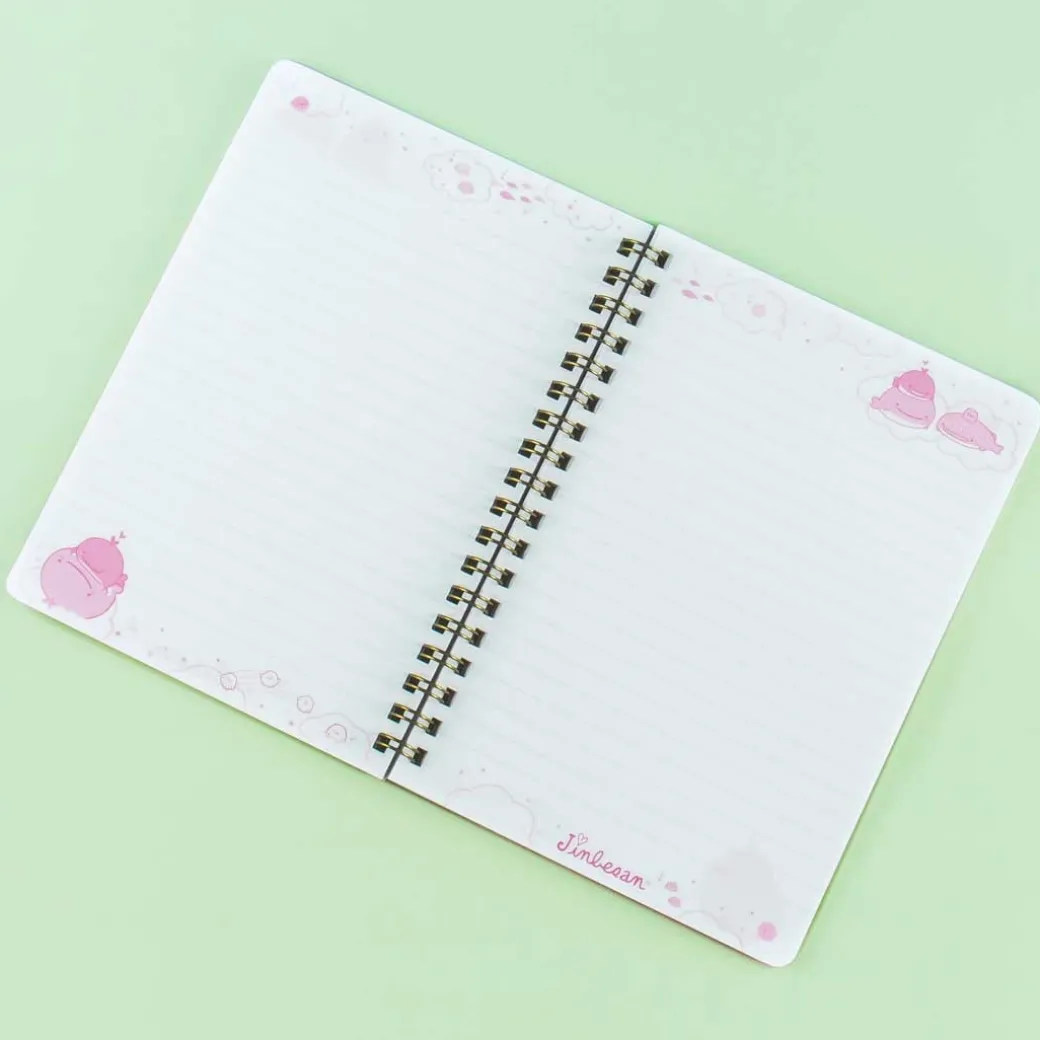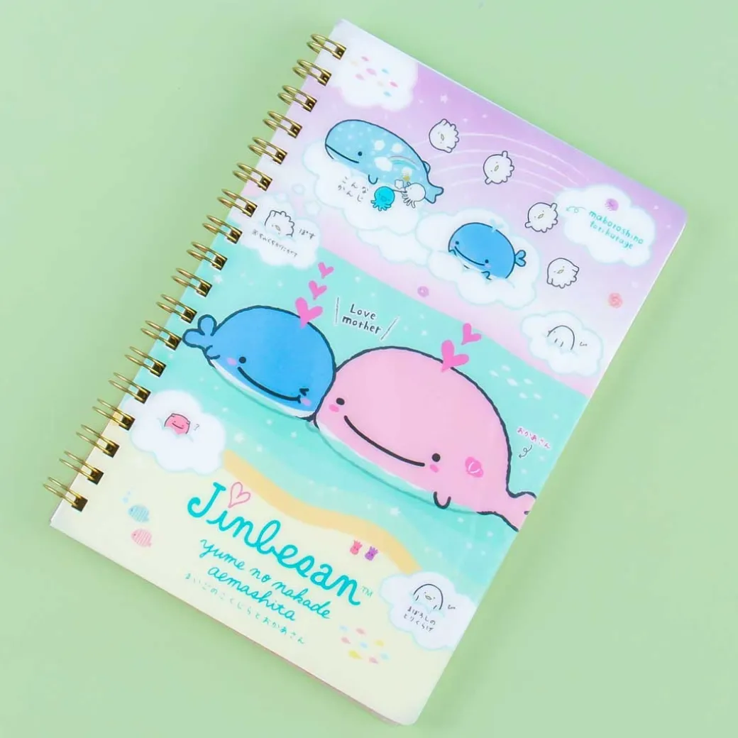 - A kawaii spiral notebook featuring the Maigo No Kokujira’s Dream collection of Jinbesan