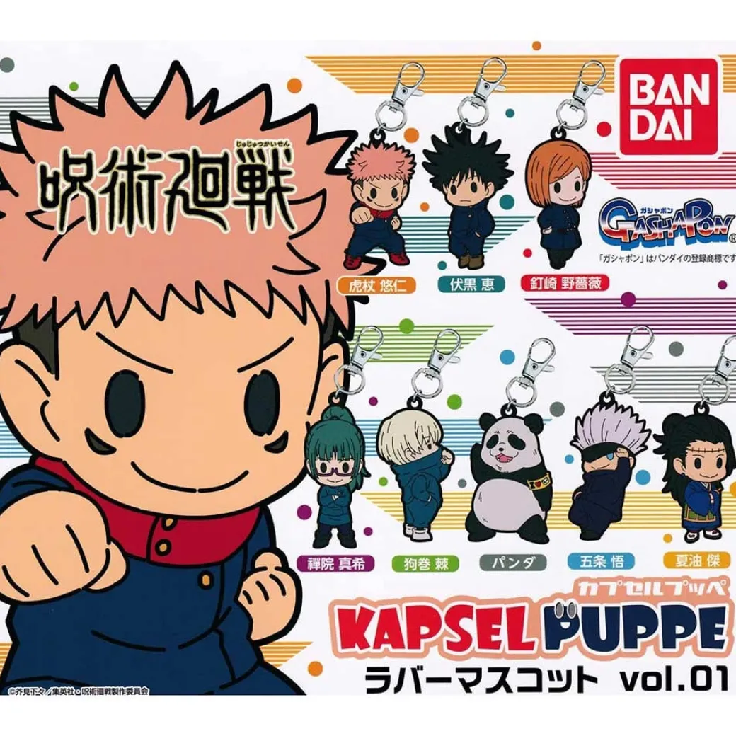 Gush over how cute this little flat rubber character figure is from the “Jujutsu Kaisen Kapsel Puppe Rubber Keychain Vol. 1” series. The kawaii collectible features a character keychain with unique big black eyes from the popular action manga and animé series Jujutsu Kaisen! Each die-cut figure comes with a metal clip so you can easily attach it to your bag.