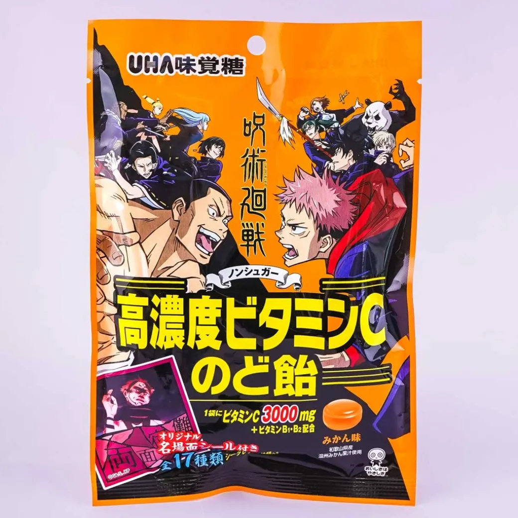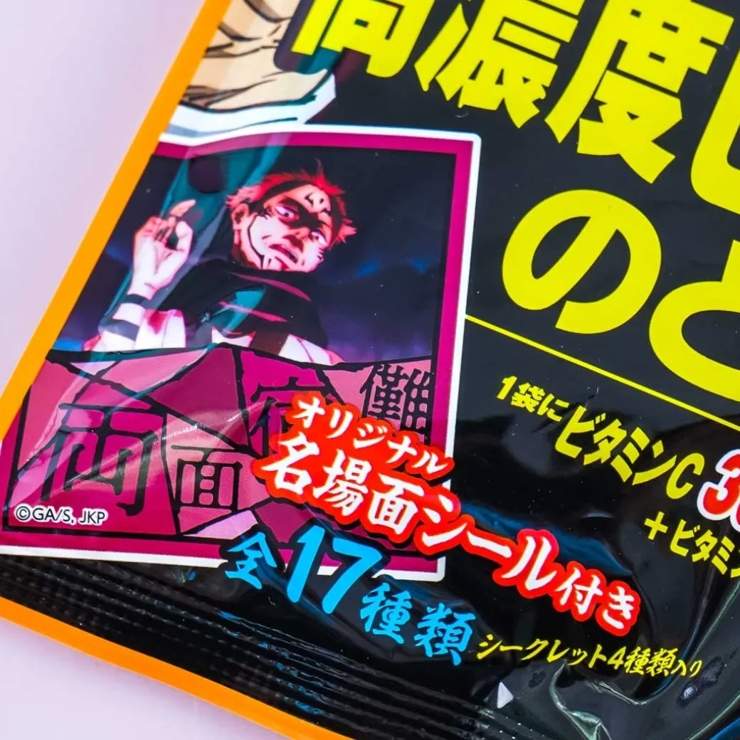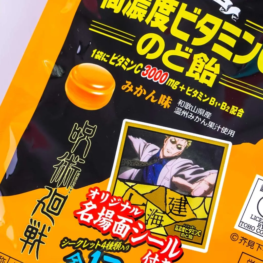 - A pack of orange-flavored lozengs featuring prints of Jujutsu Kaisen characters