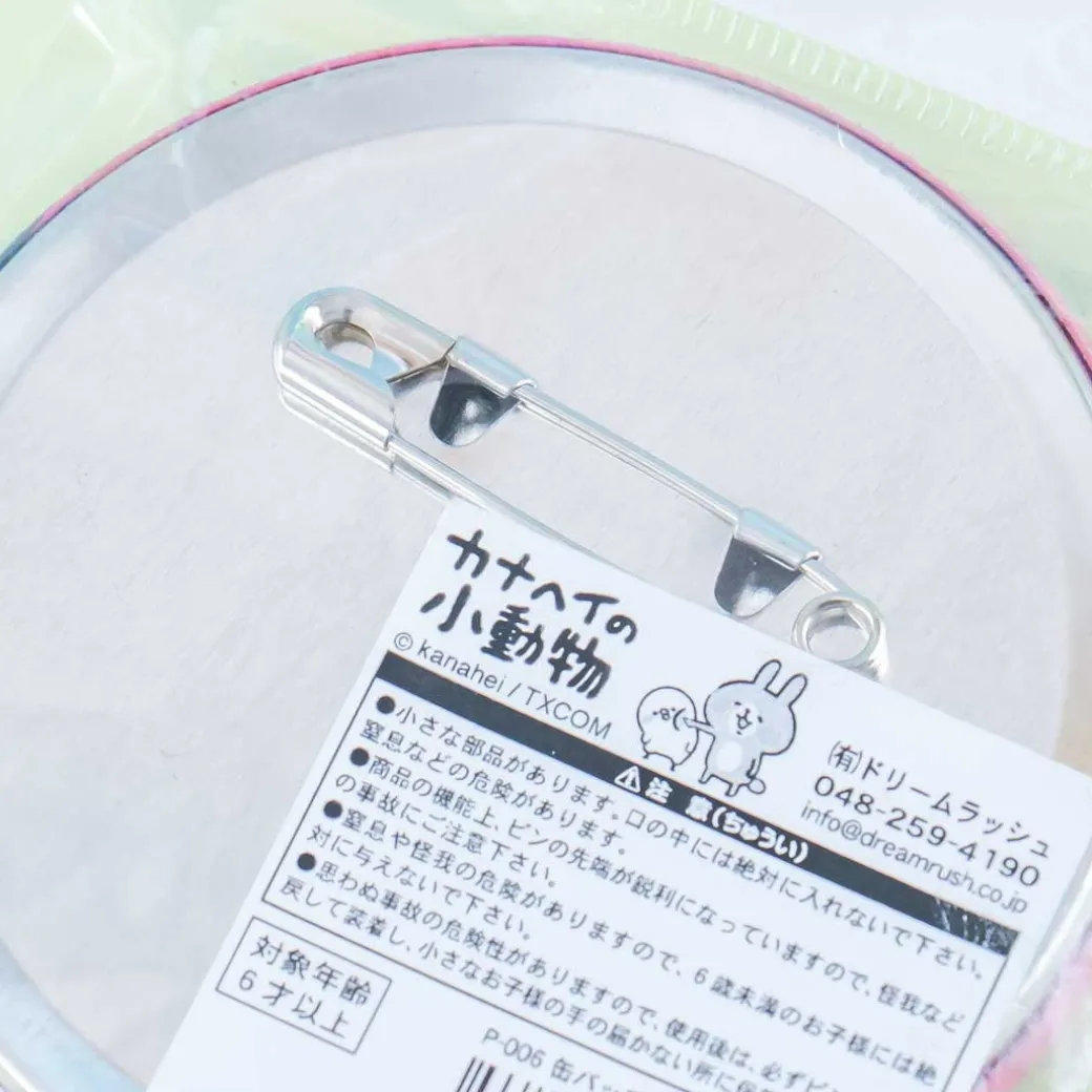 - A kawaii tin badge featuring popular Kanahei characters Usagi and Piske