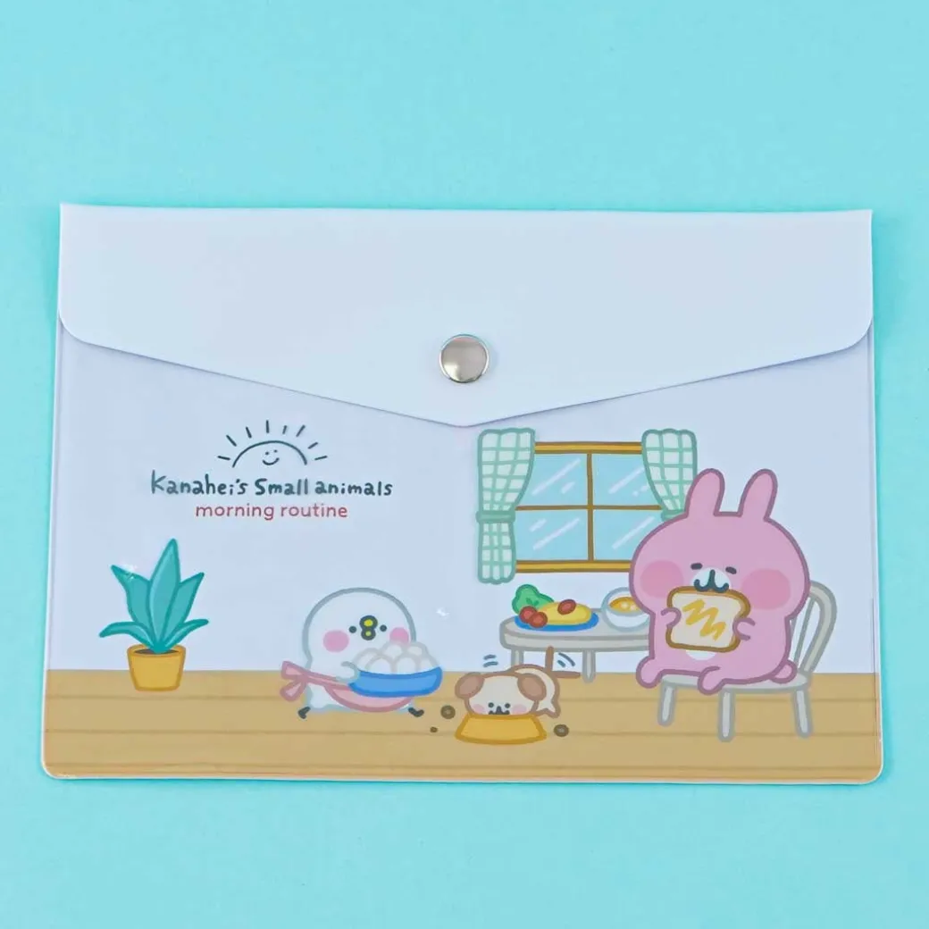 - A kawaii envelope case featuring Kanahei’s small animal characters eating breakfast