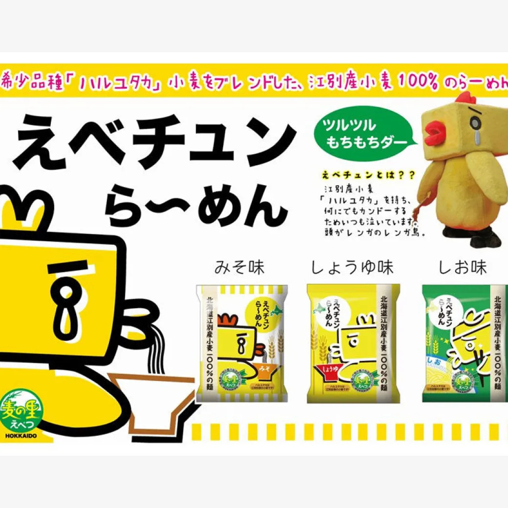 Make yourself a warm and hearty meal with this pack of instant ramen noodles. Made with 100% Ebetsu wheat blended with the rare “Haruyutaka” wheat variety, this pack of noodles is perfect for the health-conscious consumer! This pack makes for a serving of ramen noodles with classic Hokkaido miso soup.
