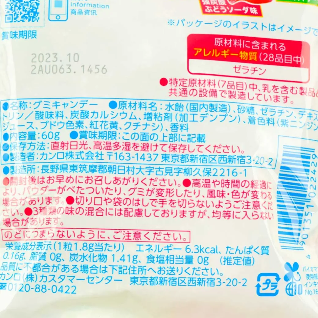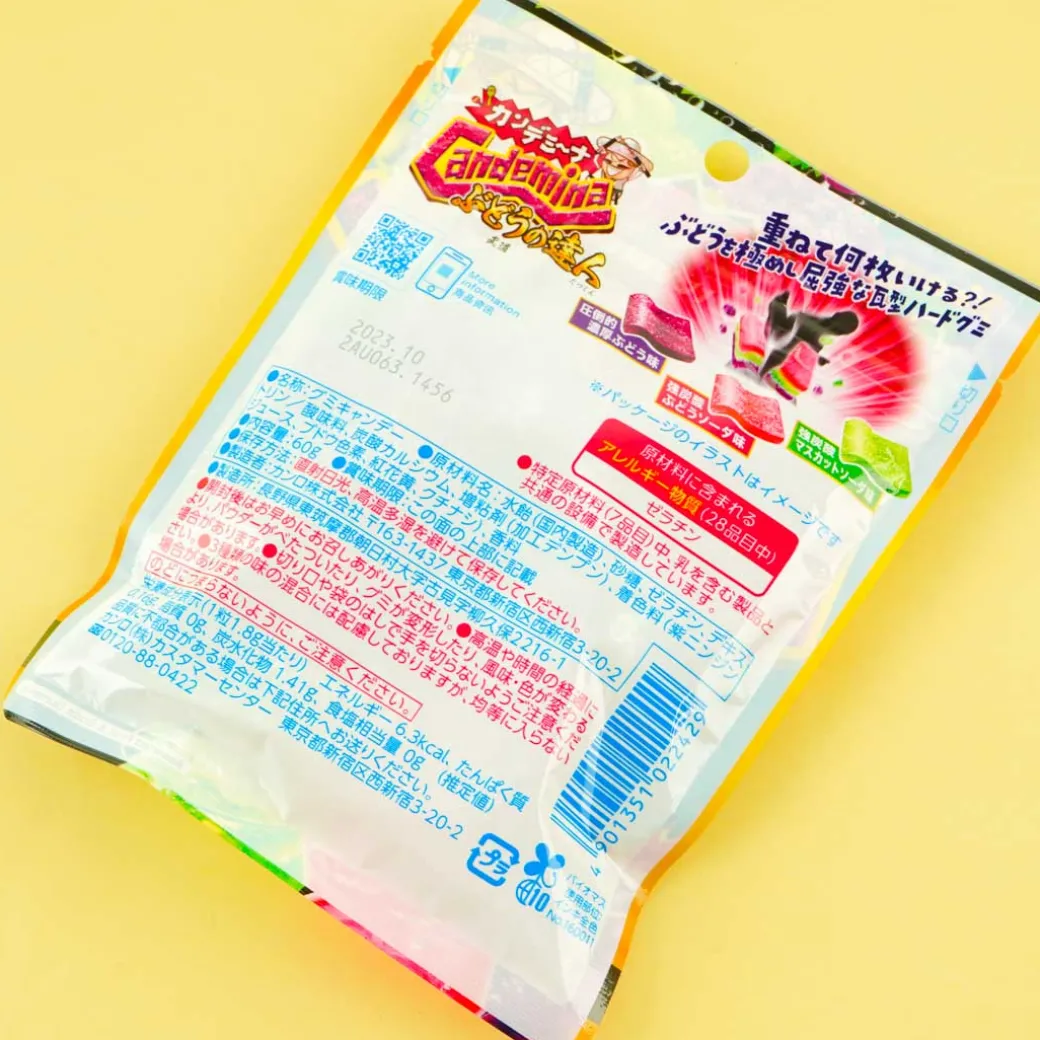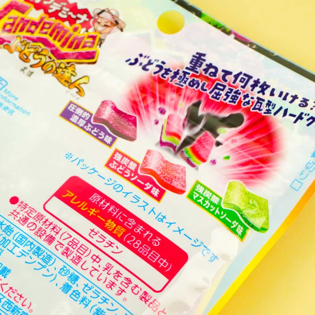 Have fun trying out these yummy wavy gummies! Each piece is generously coated with super sour powder! This bag contains three delicious flavors: grape soda, rich grape, and muscat.