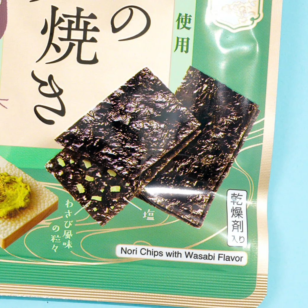 - A pack of seaweed chips with a wasabi flavor
