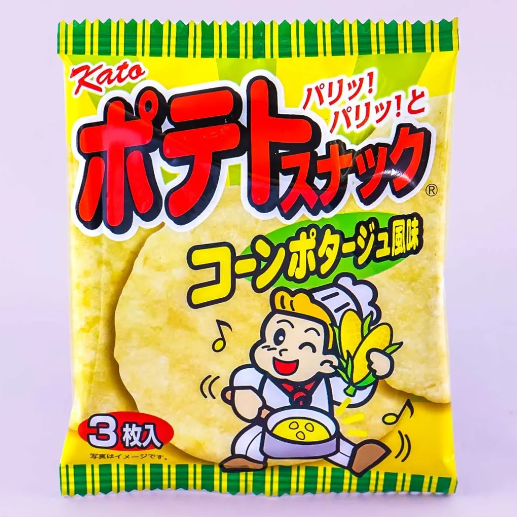 - A pack of corn potage-flavored potato snacks