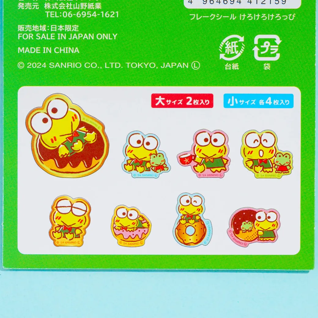 Use these kawaii die-cut stickers to decorate your notebooks! Each semi-transparent sticker features a die-cut print of Keroppi enjoying donuts.