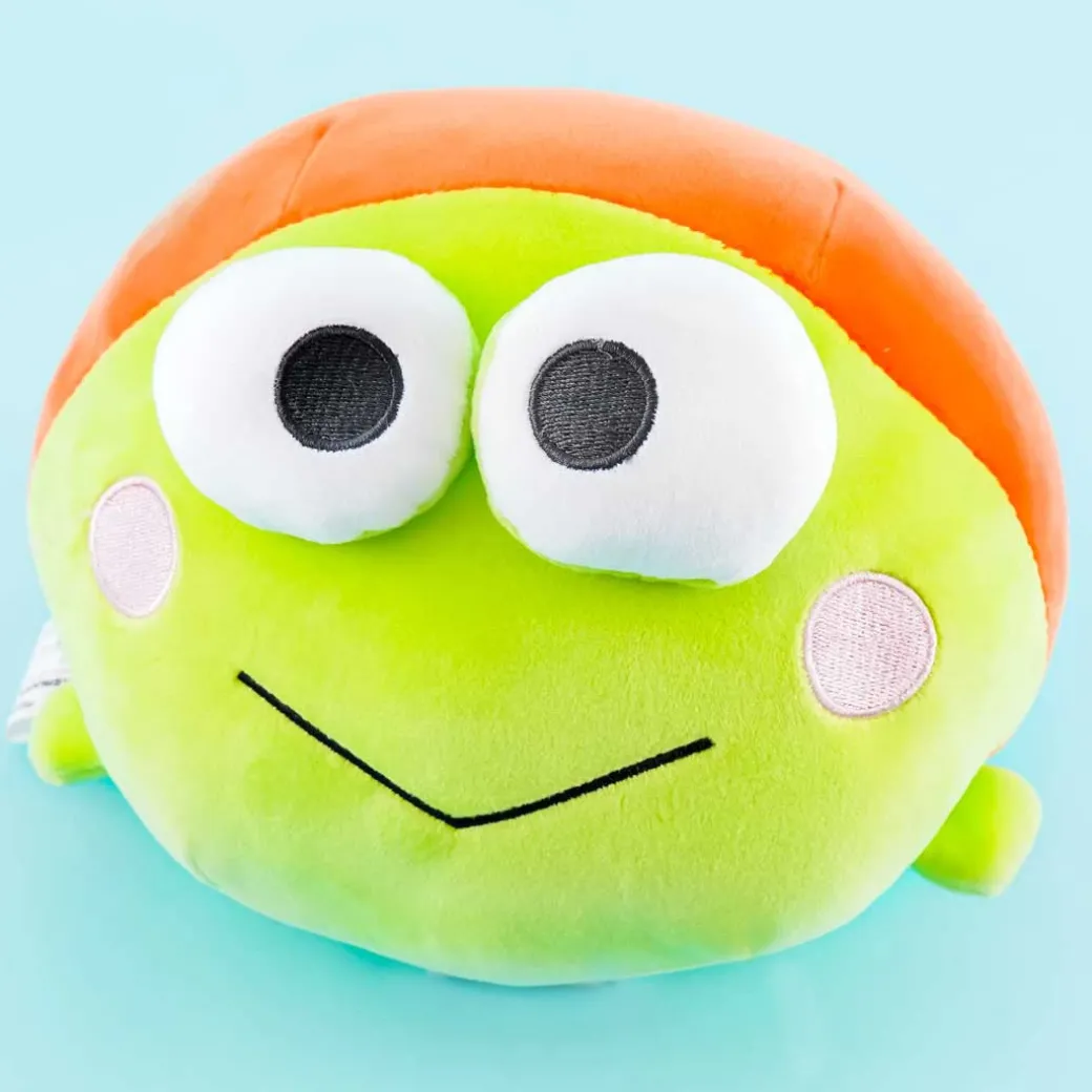 - A super kawaii medium-sized Keroppi cushion plushie lying on its belly