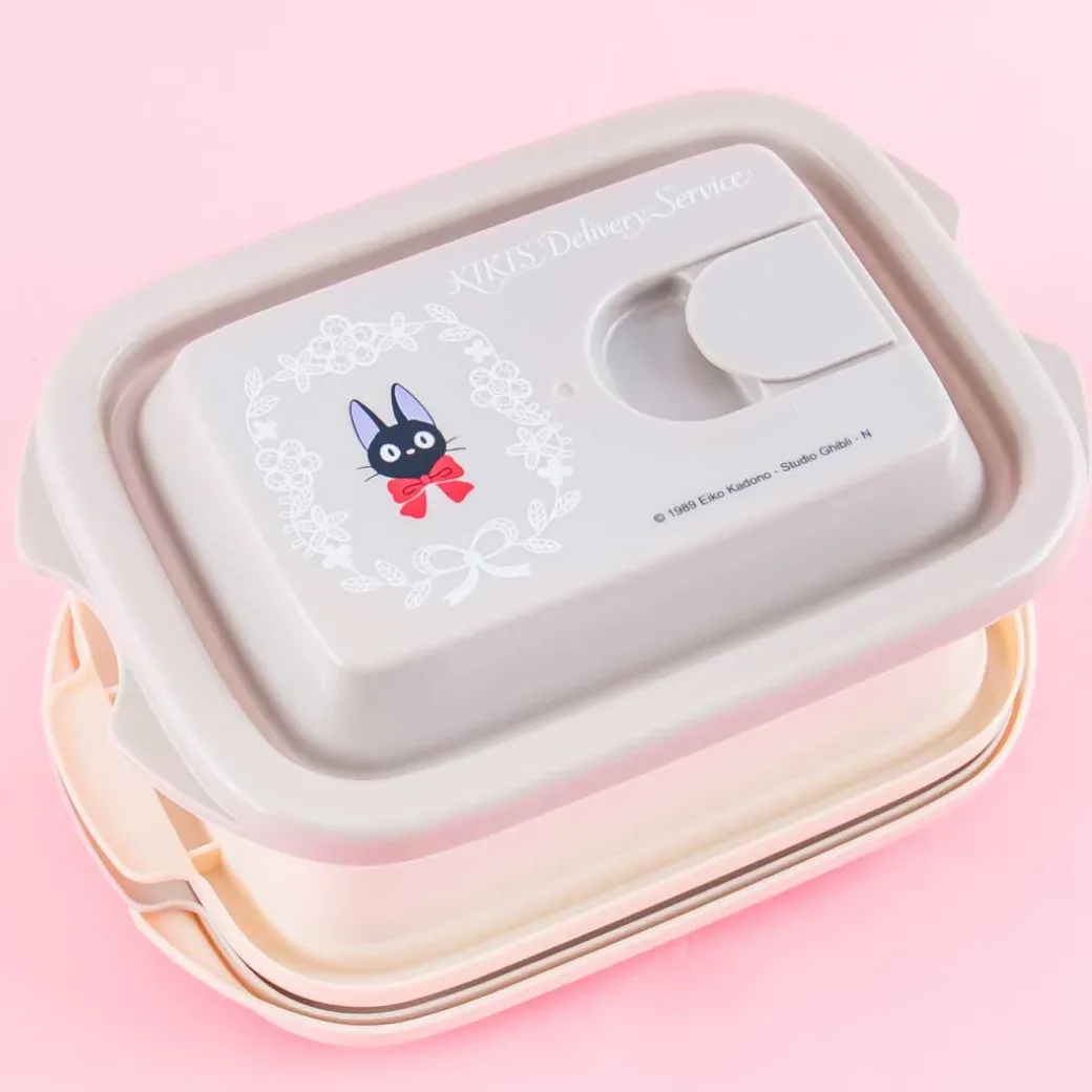 - A kawaii medium-sized bento box set illustrated with Jiji from “Kiki’s Delivery Service” surrounded by flowers