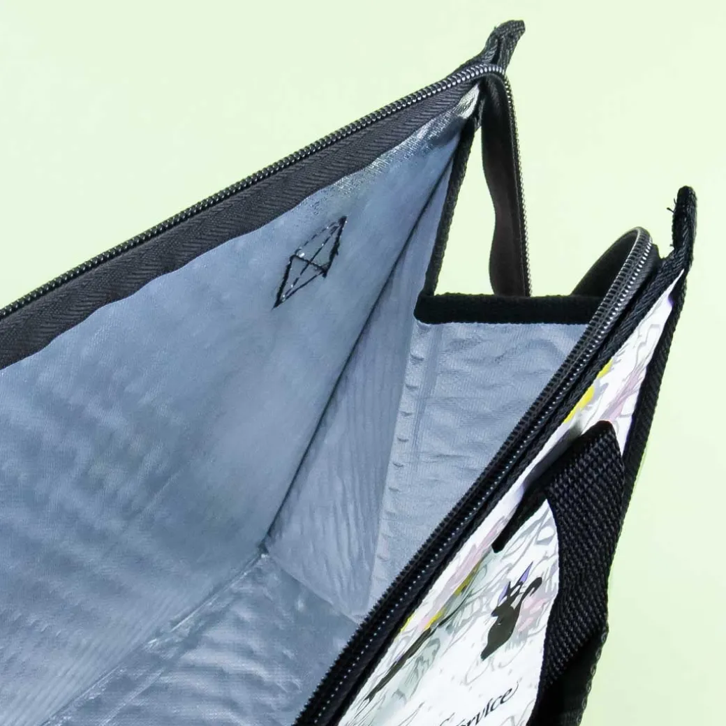 - A super kawaii lunch bag illustrated with Jiji from Kiki’s Delivery Service together with flowers