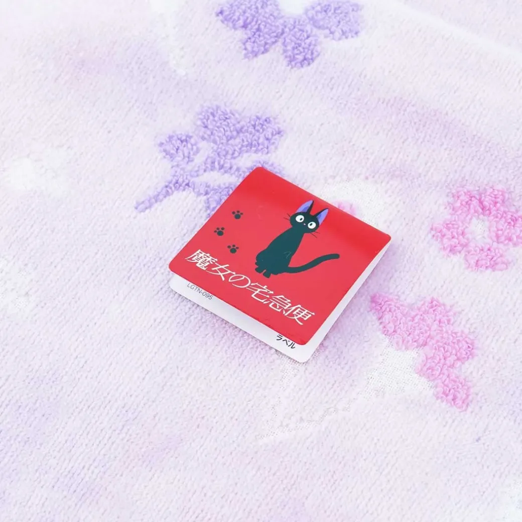 - A cute bath towel illustrated with prints of Jiji and lots of flowers