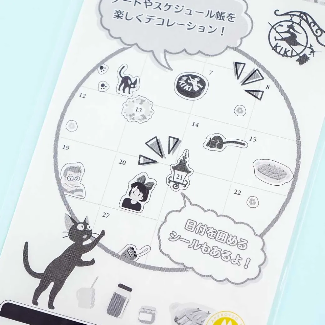 - A cute sheet of stickers illustrated with characters from Kiki’s Delivery Service