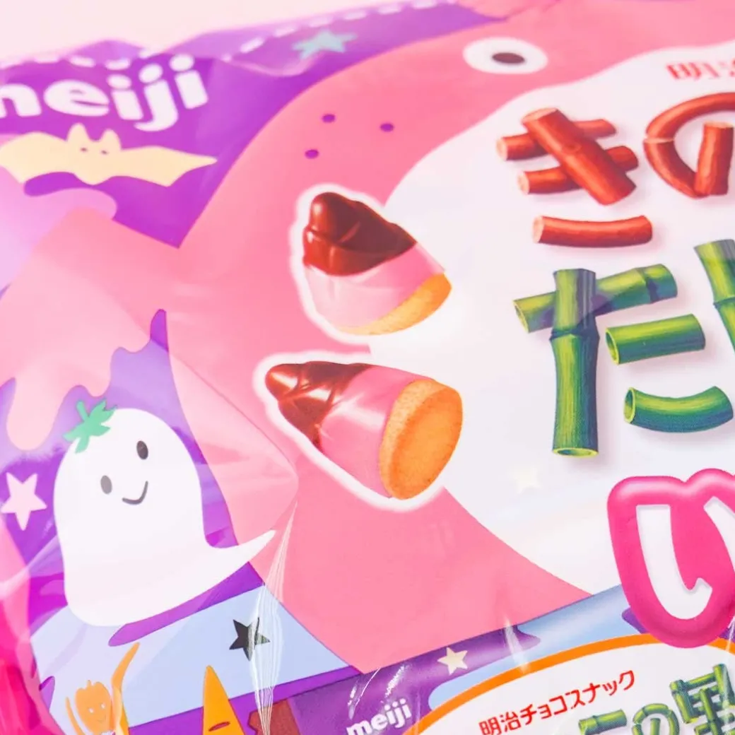 - A Halloween edition large bag of Takenoko no Sato and Kinoko Nn Yama biscuits with strawberry and choco coating