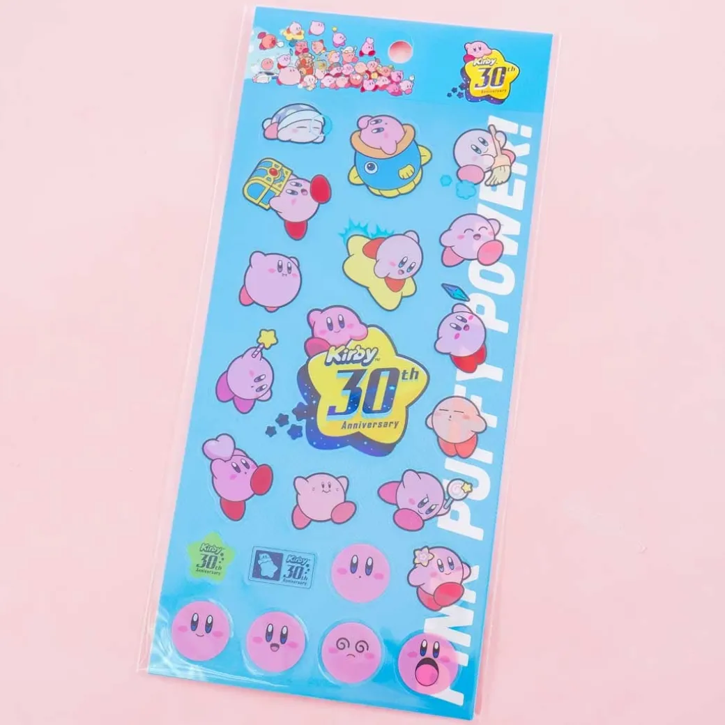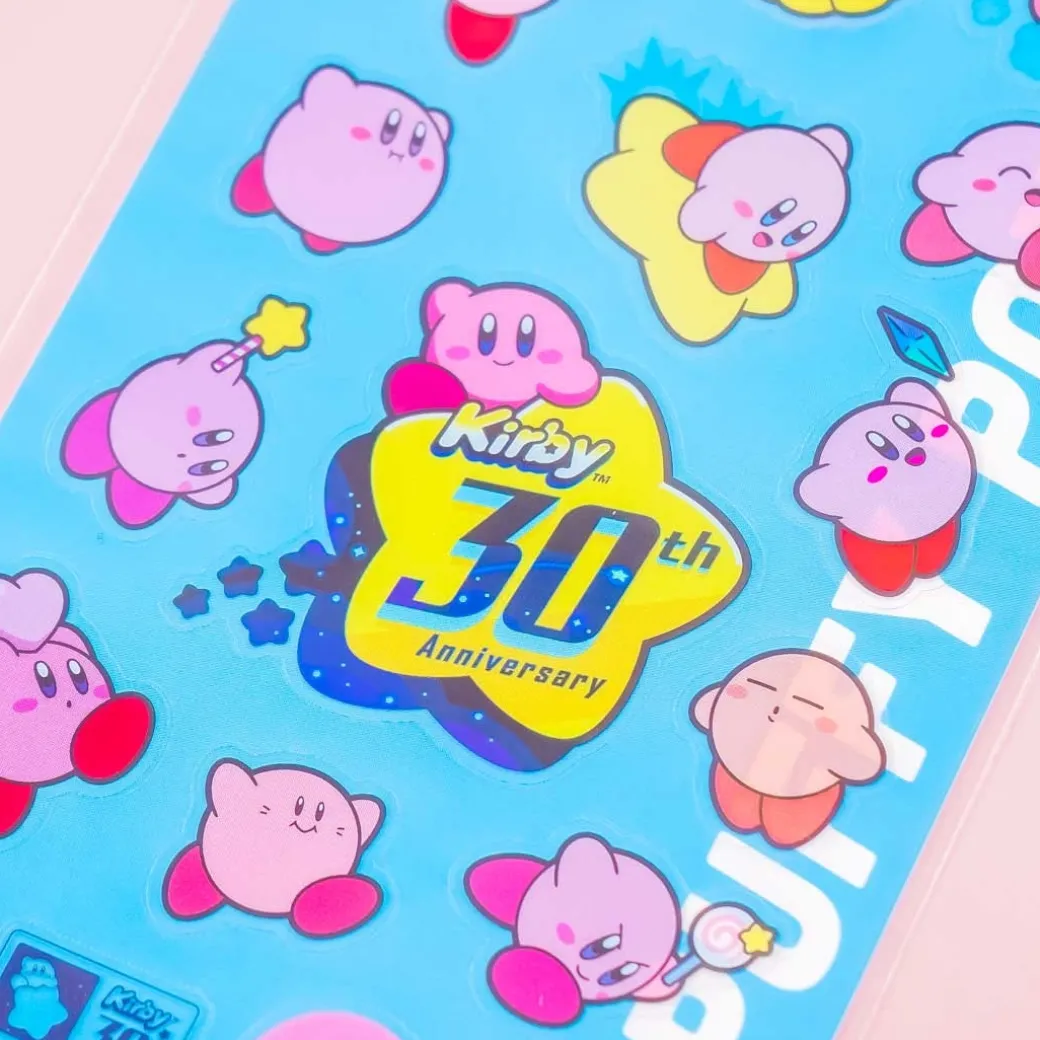 - A cute sheet of clear stickers celebrating Kirby’s 30th anniversary