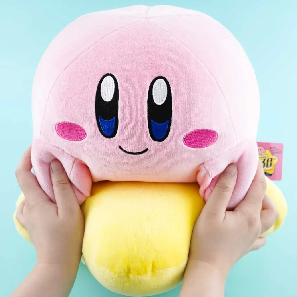 - A medium-sized Kirby plushie on top of a giant star