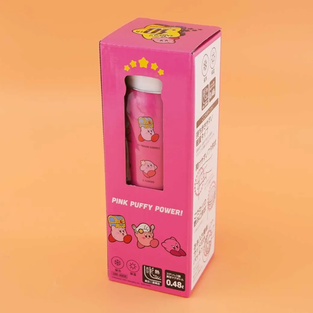- A cute stainless steel bottle decorated in prints of the different kinds of Kirby