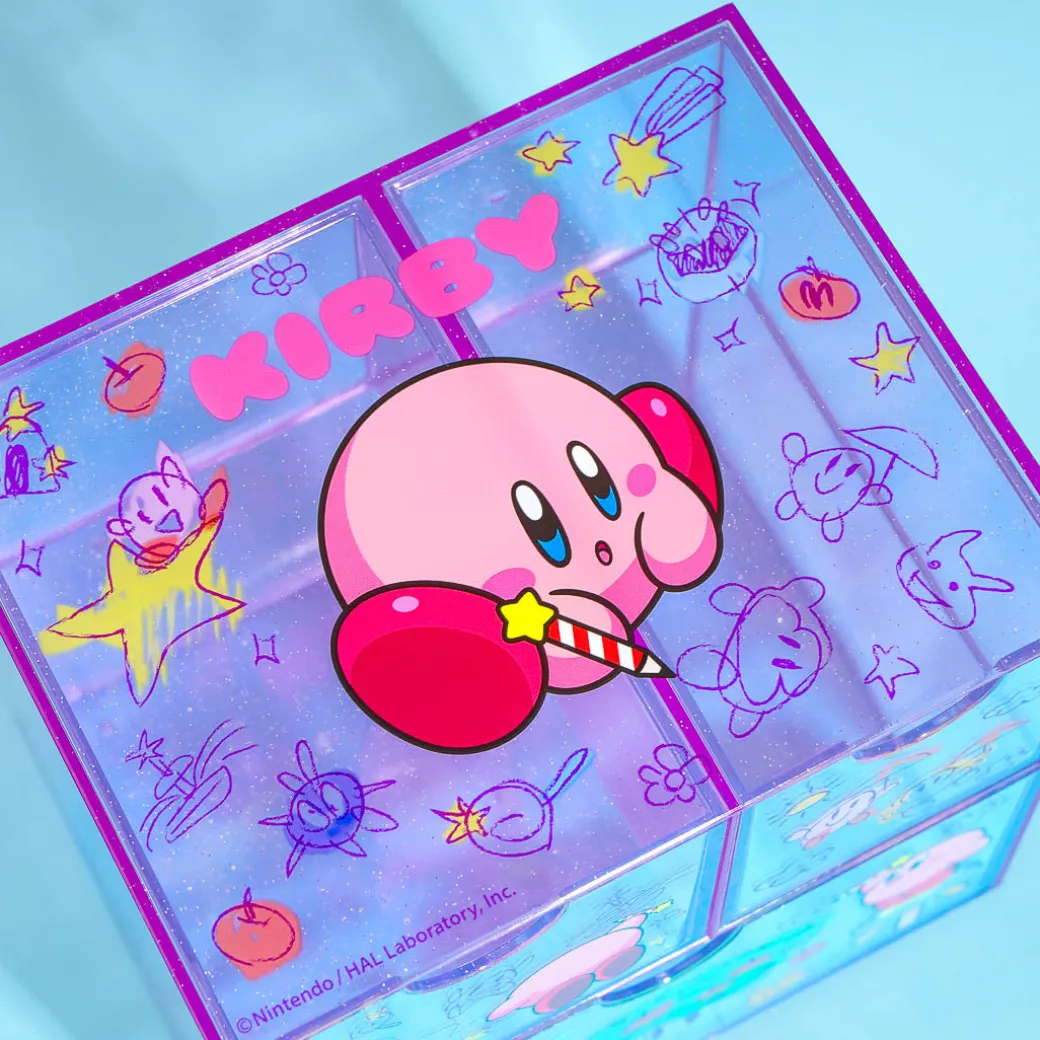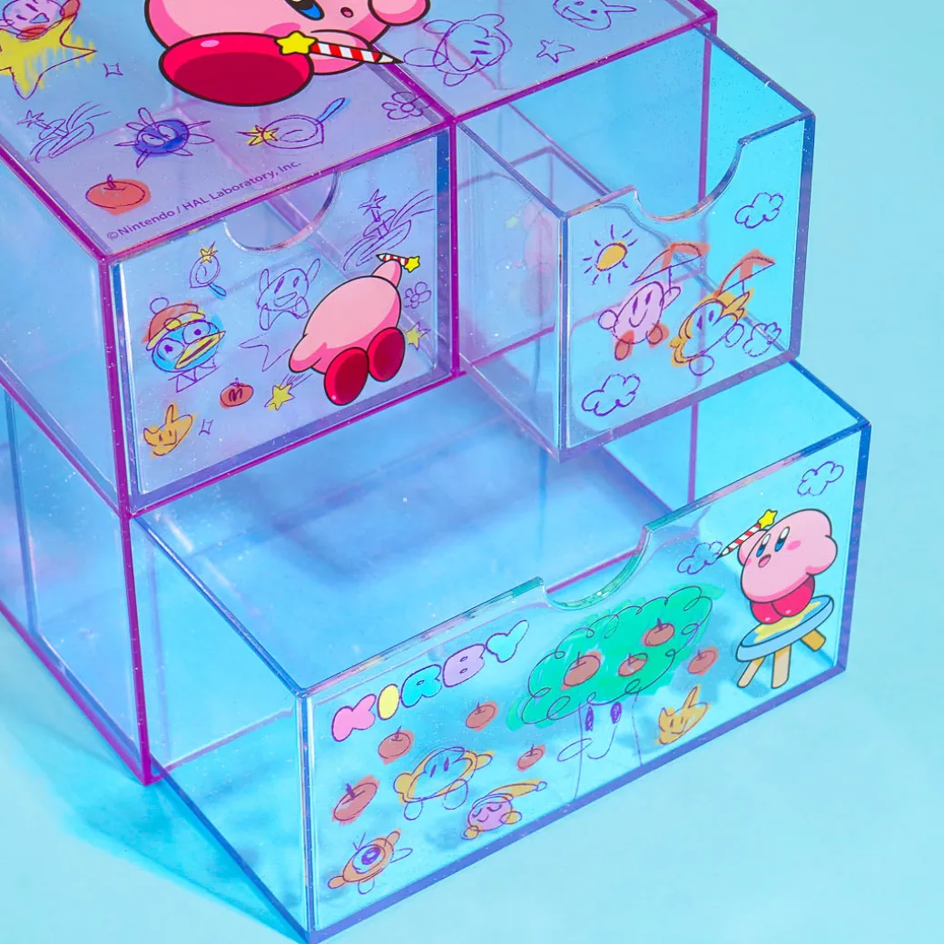 Organize your small items with this kawaii clear chest! It showcases cute prints of Kirby doodling his friends and lots of apples. This chest has three multi-sized drawers so you can easily sort your stuff.