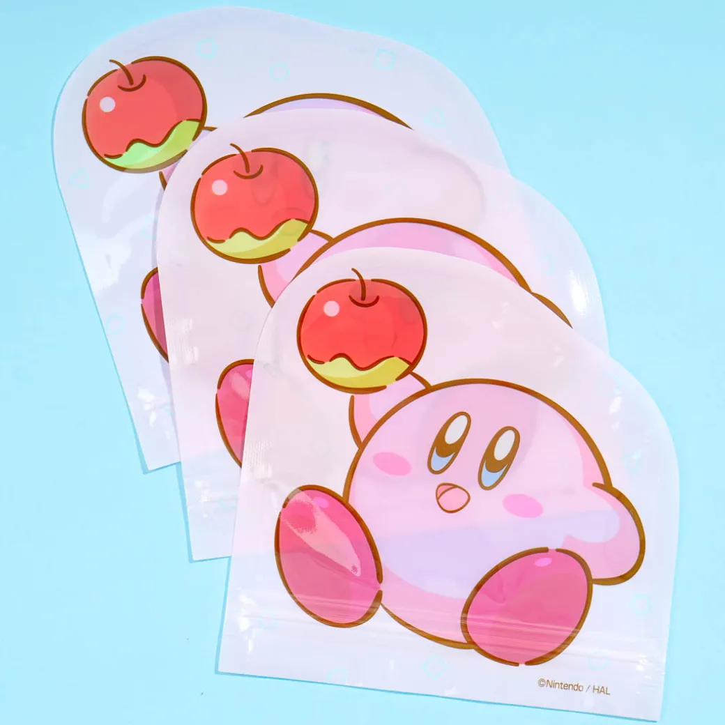 Keep your candies in this set of resealable plastic bags! Its die-cut design showcases a cute print of Kirby holding an apple.
