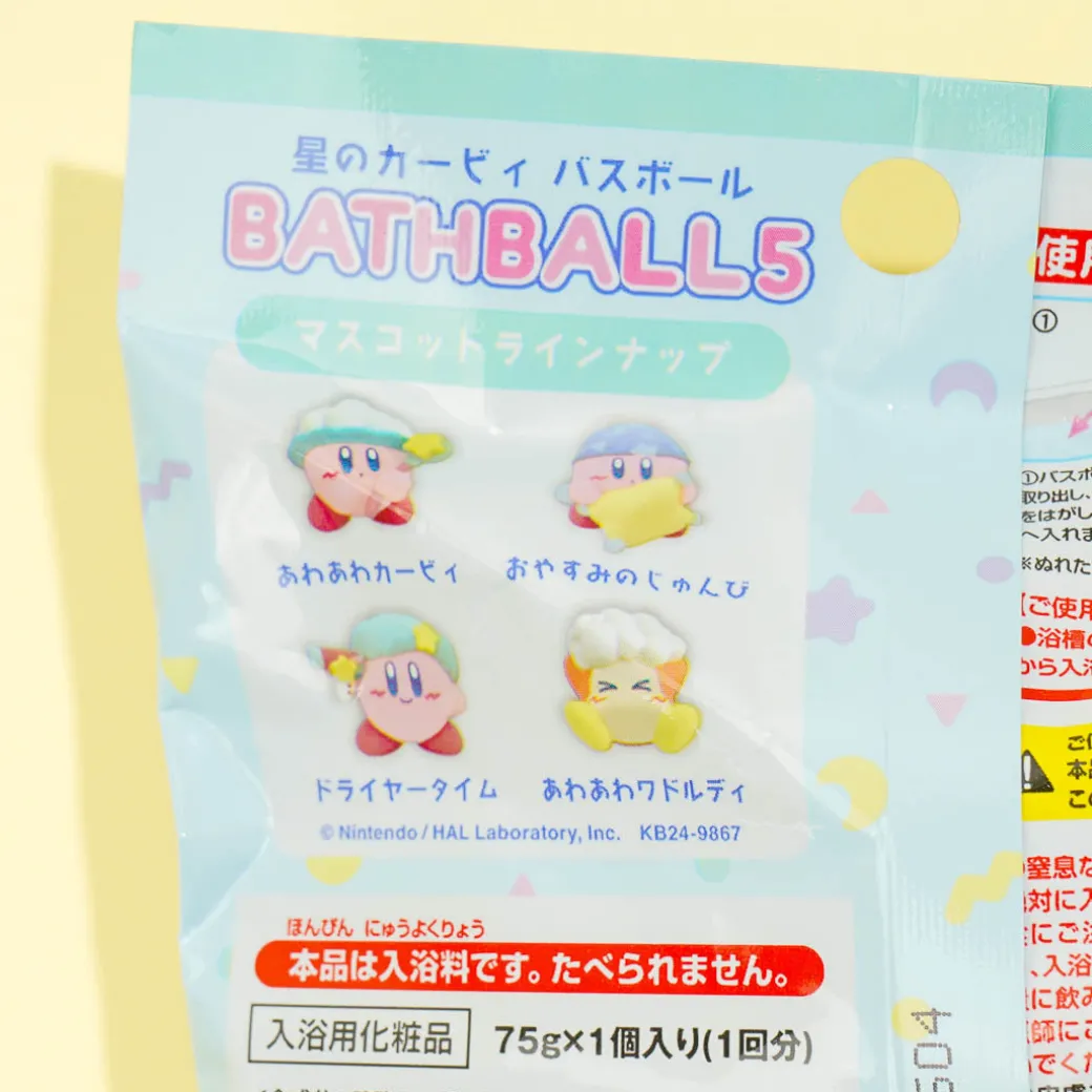 Have a fun bath time with Kirby! Simply place this bath ball in a tub filled with warm water and watch it melt to reveal a cute figure! The figure and packaging features Kirby getting ready for bed.
